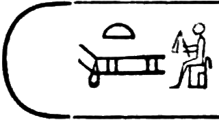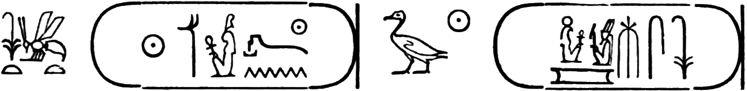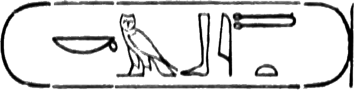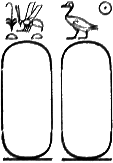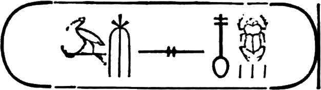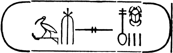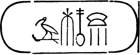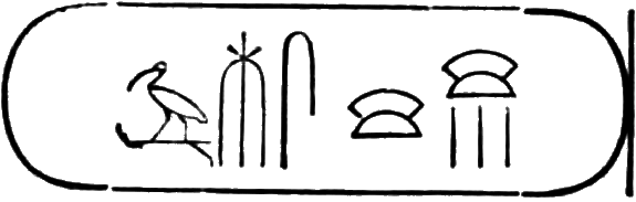 The last hieroglyphs of the two columns of the cartouche form the regal name: Thoth-mes.