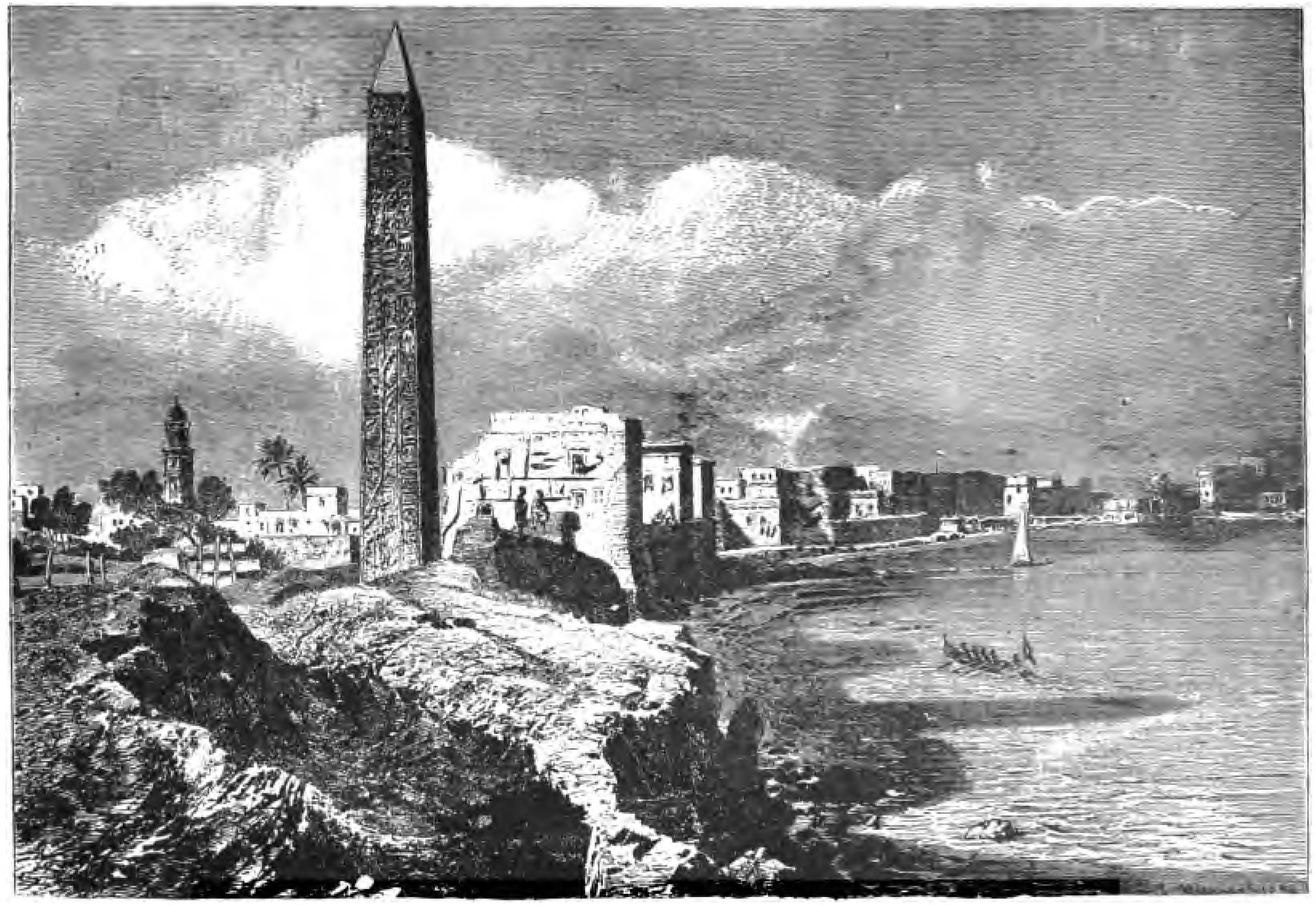 The oldest nation on the globe sends her greeting to her youngest sister. The "Setting Sun" has shed its last rays on the Old World from Egypt's sunny land and now appears on this western shore as a brilliant "Rising Sun". In the metropolis of the Western Hemisphere one of Egypt's grandest treasures meets our eyes and, though silent, reminds us of her former greatness. Here stands a monument of two of her greatest Pharaohs, lords and conquerors, scourges of their people, and a terror to their foes. It tells the story of serfs and teems with cringing words and the praise of despots. Yet it was a glorious time when this monument was erected and inscribed, a time of power, pride, learning, greatness, conquest for the lords, but for the people a time of abject subjection, misery, and hardships. Pharaoh was master of all. But the sun of his grandeur has set and vanished, and our obelisk, that proud monument of Pharaonic times, now sees a spectacle which the greatest flight of fancy could not have pictured to any man of those by-gone days.