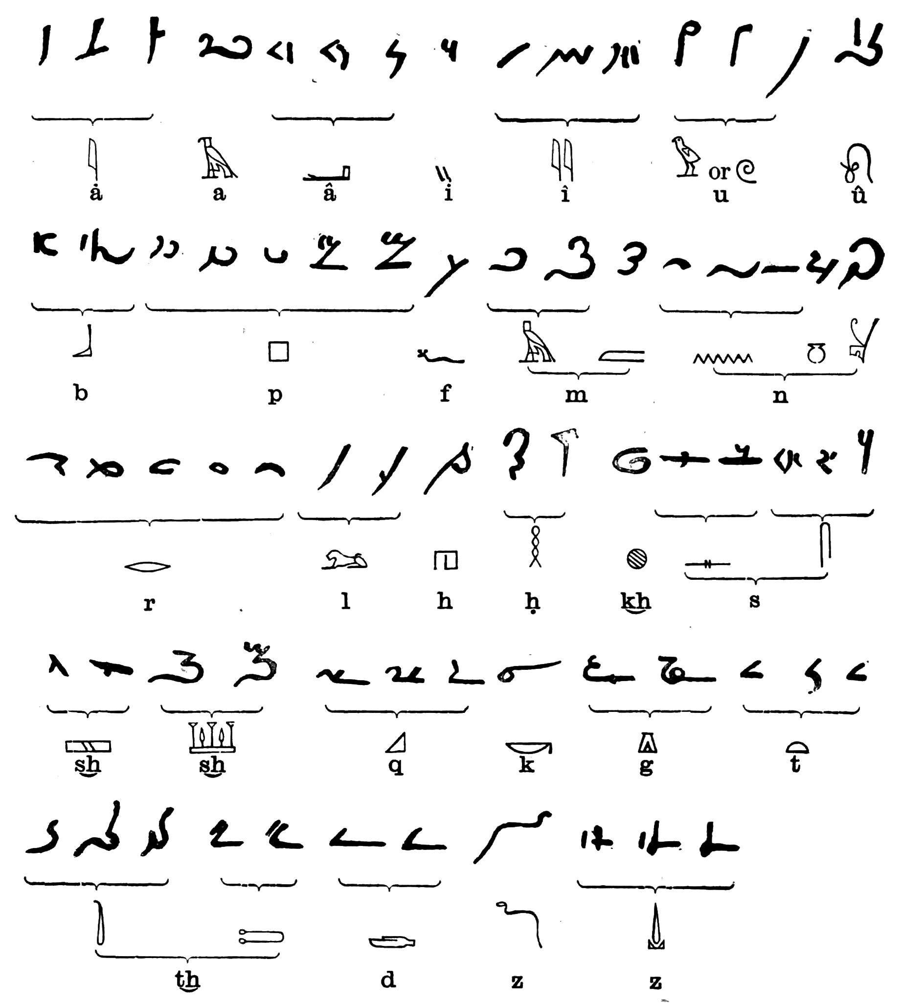 | List of the Egyptian dynasties. 108-111. The Coptic alphabet. 113. The Demotic alphabet. 116. The Hieratic alphabet. 124. | |