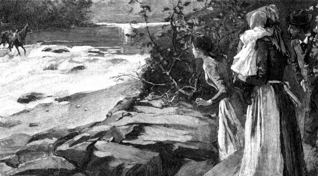 Only the dwellers in the mountaineer's cabin hard by listened at times to the pulsing rhythm, as alive as the metre of a great poem; and, again, in duller mood, its sound was but as silence to those who cared not to hear. The dark little house seemed small and solitary and transitory here among the massive, enduring mountains, beside the majestic flow of the waters, and the rail-fence enclosed the minimum of space from the great unpeopled wilds.