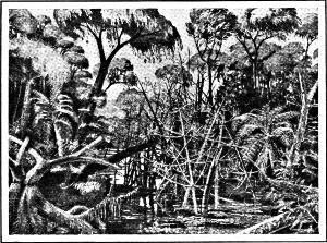 FOREST SWAMP OF THE CARBONIFEROUS PERIOD (Coal Age). From a drawing by Potonié and Gothan