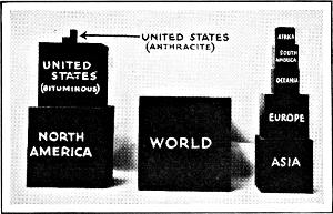 When a coal famine is upon us there is a grain of comfort in the reflection that beneath the soil of this country, and within 3,000 feet of the surface, there still lies 3,538,554,000,000 tons of coal. This is the estimate of the United States Geological Survey. We have mined coal wastefully and used it prodigally, yet we have taken from the ground, up to the present time, only a fraction of one per cent. of the total amount at our disposal. The whole of our “coal reserves,” if they could be extracted and placed in a great cubical pile, would form a mass 8.4 miles long, 8.4 miles wide and 8.4 miles high. If the coal thus far mined were piled up in the same way, the cube would be 7,200 feet long, 7,200 feet wide, and 7,200 feet high.[1]