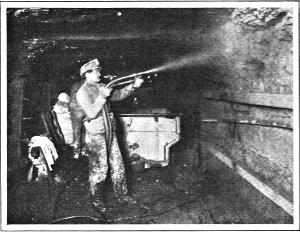 The coal in the mine constantly gives off various gases, one of which, the notorious “fire-damp” (methane or marsh-gas), is responsible for many explosions. In recent years it has been discovered that coal-dust itself, when mixed with the right proportion of air, is violently explosive. Mine explosions may be minimized by requiring the use of “safety-lamps” (oil, gasoline, or electric); by providing devices to prevent sparking in electrical apparatus; and by using for blasting operations only so-called “permissible” explosives, which give a shorter and cooler flame than black powder. Coal-dust explosions can be largely prevented by wetting the walls of the mine, or by the new process of “rock-dusting,” which consists of applying dry incombustible powdered rock to all surfaces. Unfortunately, none of these precautions are employed as generally as they should be.