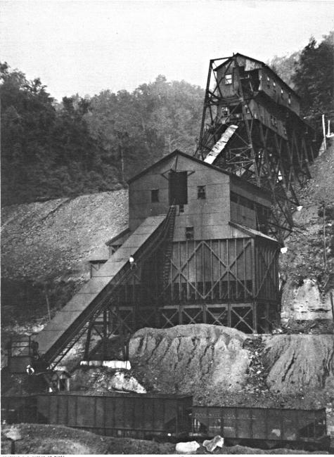 In times gone by coal was carried out of the mines on the shoulders of men and women, and then transferred in wheelbarrows to the sailing-vessels or wagons in which it was taken to market. In progressive mines of today the coal is loaded in the mine into small mine cars, which are hauled and hoisted to the surface by electricity or steam. The mine cars are dumped on an elevated platform called the “tipple,” and the coal passes through chutes or conveyors to the railway cars waiting underneath to receive it. On its way downward it undergoes a more or less elaborate process of screening, breaking, picking, washing, etc., according to the kind of coal and the purpose for which it is to be used.