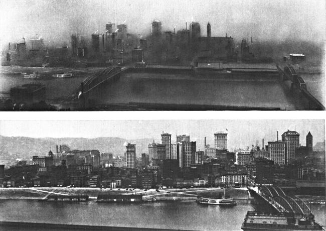 SMOKE PROBLEM—SCENE IN PITTSBURGH BEFORE AND AFTER THE SMOKE CURE