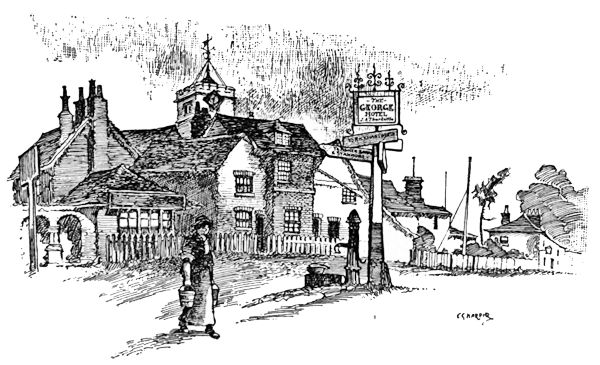On the height above Caterham we are on the crest of the North Downs, 777 feet above sea-level, and after admiring the widespread view southward, may reap the reward of the long climb in a breathless coast down two miles of road, past Marden Park, into Godstone, an old-world village rejoicing in the possession of a village green, a pond, and an ancient and[253] picturesque hostelry, recently renamed the “Clayton Arms,” but really the “White Hart,” established in the reign of Richard the Second, whose badge it was.
