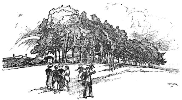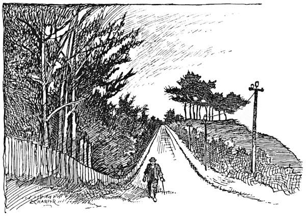 For five miles the road climbs up and up, on its way to the crest of the North Downs and Marden Park, past aforementioned Riddlesdown, where we joyfully leave the swings and the cocoa-nut shies behind, past Kenley and Warlingham stations, with the Downs on the left and a lovely valley on the right, and through Caterham, where there is a military depôt, and where at the ranges the “recruity” is taught the business of shooting. There are many Tommies in the making at Caterham, inchoate guardsmen who have not yet quite lost the shamble of the civilian or acquired the carriage of the soldier and the nice conduct of a swagger-stick.