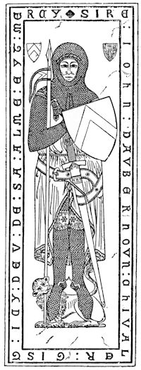 Here, then, is the effigy of the horse’s head carved beside it. The Baron’s hands are not, indeed, “clasped in prayer,” for his arms have been shorn off by some vandals at the elbows; but that is a detail. His sword and lance lie by his side. “It was the fashion in feudal times,” says Barham, “to give names to swords: King Arthur’s was christened Excalibur; the Baron called his Tickletoby, and when he took it in hand, it was no joke.”