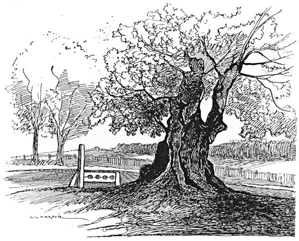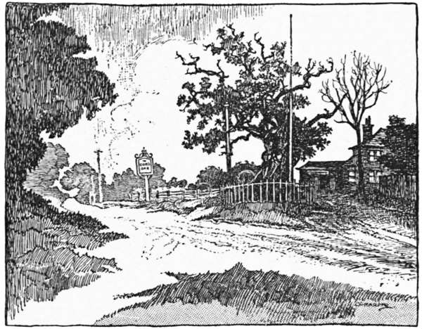 And now for Gough’s Oak. There are more ways than one of reaching Goff’s (or Gough’s) Oak from here. Let us take the turning to the left, and, avoiding a further turn in the same direction, go by Love Grove, along a series of country lanes. The original Gough was Sir Theodore Godfrey, who “came over with the Conqueror,” as the musty old phrase goes; and on what used to be Cheshunt Common he planted the[235] still existing tree, which fully bears out Dryden’s lines—