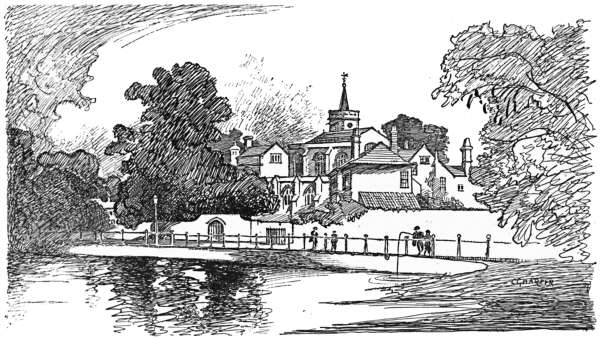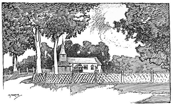 To have visited Jordans, where the early Quakers worshipped and are laid to rest; to have entered beneath the roof of the “pretty cot” at Chalfont St. Giles that sheltered Milton; to have seen with one’s own eyes Penshurst, the home of the Sidneys, and Chenies, the resting-place of the Russells; to have meditated beneath the “yew tree’s shade” at Stoke Poges; to have seen or done all these things is to have done much to educate one’s self in the historic resources of the much-talked-of but little-known countryside. The King’s Stone in Kingston market-place, Cæsar’s Well on Keston Common, the “Town Hall” at Gatton, the Pilgrims Way under the lee of the North Downs, and the monumental brasses of the D’Abernons at Stoke D’Abernon have each and all their engrossing interest; or, if you think them to savour too greatly of the dry-as-dust studies of the antiquary, there remain for you the quaint old inns, the sleepy hamlets, and the tributary rivers of the Thames, all putting forth a never-failing charm when May has come, and with it the sunshine, the leaves and flowers, and the song of the birds.