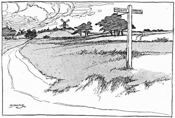 Bane and antidote succeed on this route with unfailing regularity, and the hamlet of Godstone left behind, the frowning and tremendous ascent of Tilburstow Hill confronts the explorer, who may indeed find a slightly more circuitous and very much less hilly route for the next three miles by taking the left-hand road past Godstone Station, so called perhaps because it is three miles from Godstone and only one and three-quarters from Blindley Heath. This easier way falls into the treadmill route half a mile short of Blindley Heath, which is a modern hamlet arisen on a scene once famous, in Regency days, together with the adjoining Copthorne Common, for prize-fighting contests; notable among them, that famous battle in 1819 between the “Nonpareil” and the “Out-and-Outer,” for whose details[254] the curious reader must be referred to the classic pages of Boxiana.