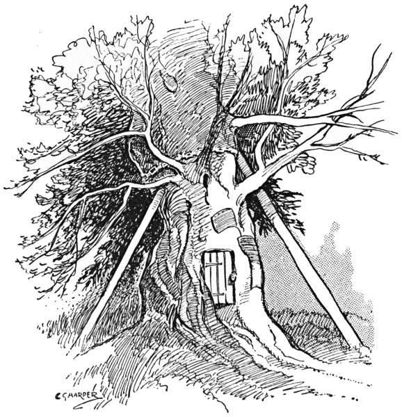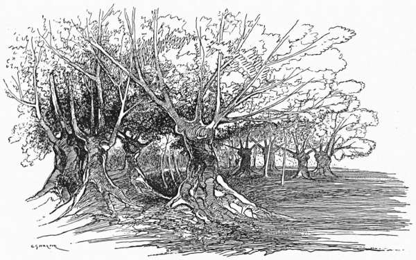 It may flourish for another hundred years if it is only left alone, although the giant trunk is quite hollow and full of holes, so that it is hooped and banded round like a barrel to keep it together. The hamlet that takes its name from this venerable relic is a thoroughly rural one of farms and dairies, and quite off the beaten tourist track.