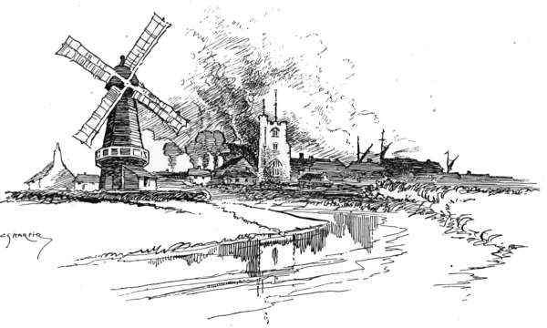 A fine road leads from Sheerness on to Minster, past the ugly outlying houses of Miletown. It is with some surprise that the stranger to Sheppey discovers good roads here: the instinctive feeling being, apparently, that coastwise islands are outside the common needs and conveniences of mainlands.