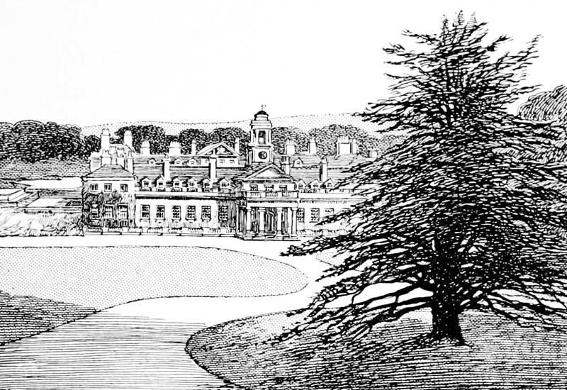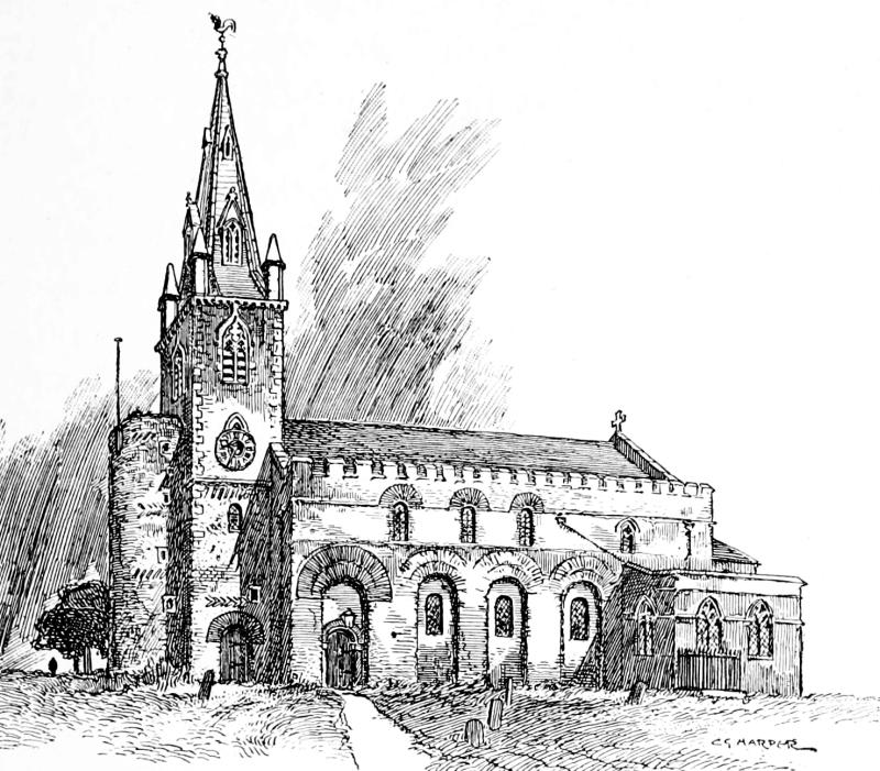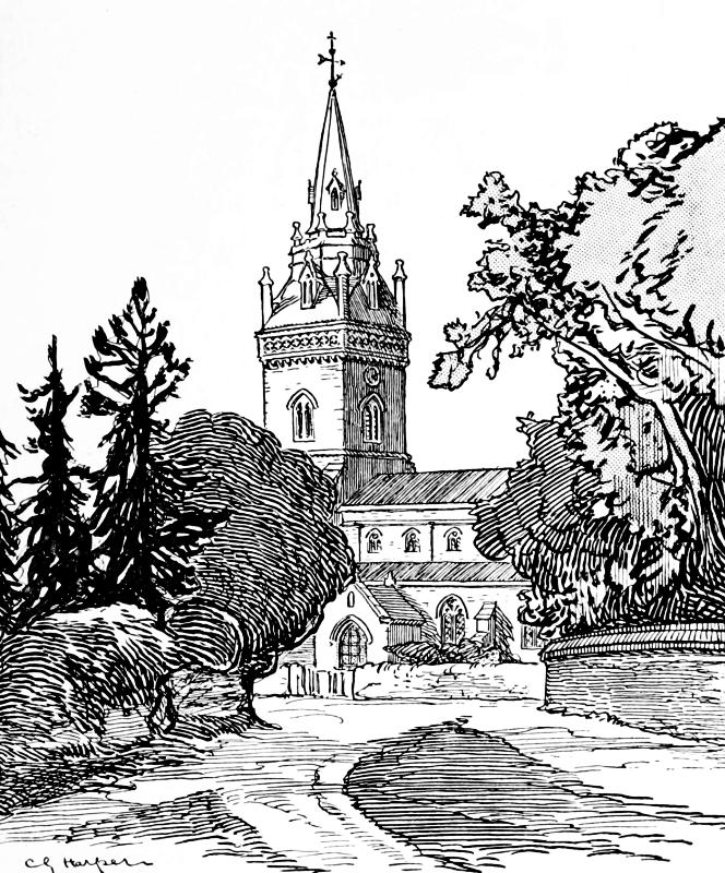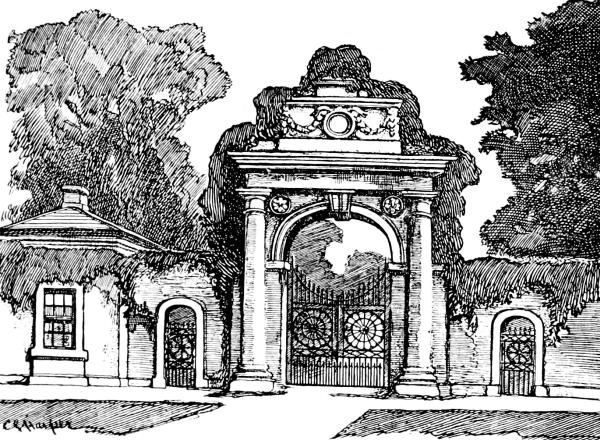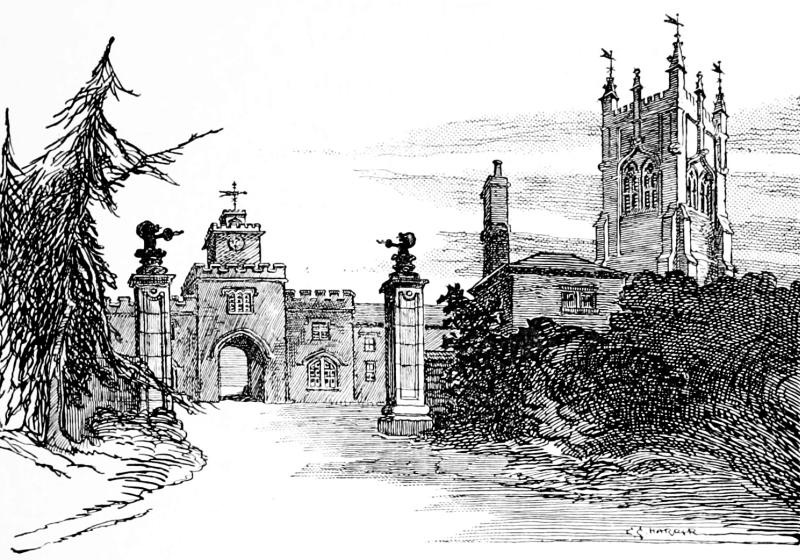 It was Sir Thomas, father of this captivating knight, who built the most striking portion of the timbered Hall. He was proud of his work, it seems, for it is duly set forth on a tablet over the entrance how in 1581 he, “Thomas Legghe and Sibbell, daughter of Sir Urian Brereton of hondforde,” were responsible for it. Equally proud of their own doings were Charles and Hester Legh, who in 1757 added the great brick wing with classic pillared front, in the taste of that age: very fine, but utterly out of keeping with the Elizabethan work. The Leghs honoured themselves by entertaining Handel, who stayed at Milne House and played upon the organ still in the Hall. The legend of the “Harmonious Blacksmith” being composed by him at Whitchurch,349 near London, is familiar to most people, and circumstantial accounts are given, connecting the incident with that place: clinched by the sculptured tombstone in the churchyard to the original blacksmith, William Powell, who died in 1721. The association with Whitchurch is so generally accepted that Powell’s anvil, which rang out the suggestive notes, was in recent times sold at auction for a considerable sum. But Adlington also stoutly claims to be the place where the famous melody was written, and Hollingworth smithy the spot that suggested it. The verdict of the court is, however, with Whitchurch. A variant upon these stories is the assertion that the melody of the “Harmonious Blacksmith” is really an arrangement of an old French air. Musicians characterise the ringing anvil origin of the air as absurd.