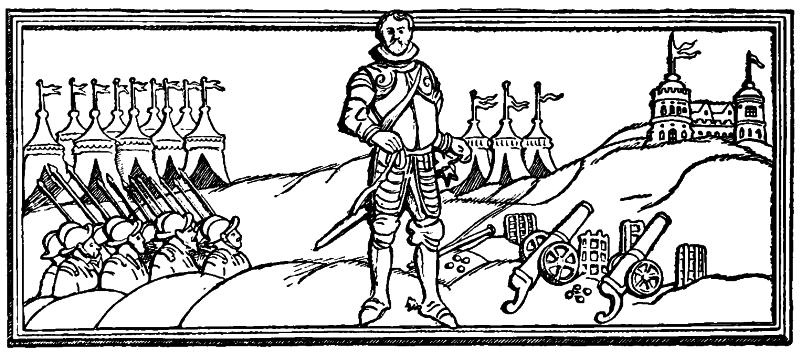 THOSE lines, instinct with the dramatic possibilities of the road in far-off days, call to mind the old engravings and wood-cuts of the Durer school, in whose back-grounds, on the Hill Terrible, sits the City Beautiful, reached along a delectable road that wanders, now across open heaths and then disappears in the welcome shade of hoary woods; reappearing to reach its goal beside mountain streams and torrents, whose boulderous course it spans by high-arched bridges. Down such roads as these, in woodcuts such as those, go horsed and armed knights, very plumy and steely, ladies fair on their palfreys, with high-horned head-dresses;viii pages, men-at-arms, peasants, and all the mediæval traffic of the highways; while the verminous hermit in his cell by the bridge comes to his door as the wayfarers go by, scratching himself with one hand, and in the other holding a scallop-shell for the alms he, in a pitiful voice and in the name of God and all the saints, implores.