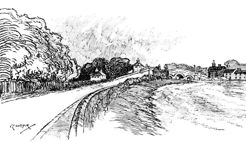 The river Dove is crossed at Hanging Bridge, or Mayfield Bridge, where rival inns, one on either side of the water, glower at one another and divide the custom of the contemplative angler and the strenuous pilgrims of the road. It is “Hanging Bridge” because of the legendary execution of rebels here.