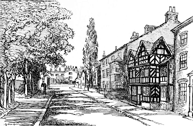 But still, for a little way ahead, it is only the main road that is so urban. Open fields, a little sickly, it is true, extend on either side, behind the fringe of houses; and away to the left, nearly two miles off, Bramhall Hall, one of the finest of the ancient timbered halls of Cheshire, may be found.