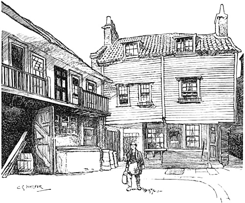 | Courtyard of the “Maid’s Head,” Norwich, showing the Jacobean Bar | 42 |