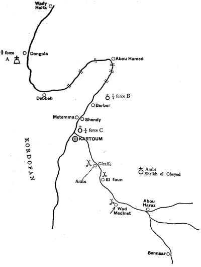 [327] The other English officers with the Expeditionary Force are Colonel Farquhar, Chief of the Staff; Majors Warner, Massey, and Evans; Captains Heath and Walker, and Surgeon-Major Rosenburg. In addition to these, there are several Austrians and Germans. Colonel de Coetlogon remains at Kartoum, and Colonel Colborne and Major Martin have been invalided home.