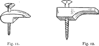 IV. Snibs or Dogs, Figs. 11, 12. These are pieces of wood screwed down to the table, which hold the panel or other piece of work by a projection. They are easily made by simply sawing out a piece of wood fairly corresponding in thickness to the panel.
