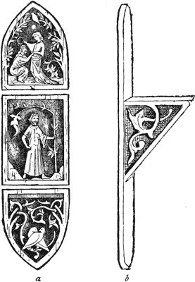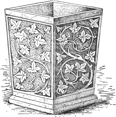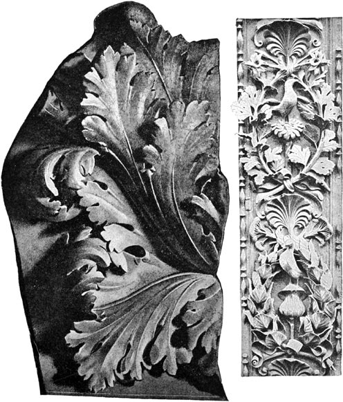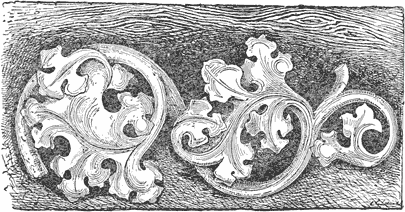 Finally, the author has endeavoured in these pages to treat wood-carving not merely as a fine art, whose chief aim is to produce specimens of fancy work for exhibitions, and facsimiles of flowers, never to be touched, but also to qualify the learner for a calling, and what nine-tenths of all practical wood-carving really consists of, that is, house and other large decoration, and of work which is to be perhaps painted, and exposed to the air. There is no reason why the artist should not be prepared to undertake figure-heads for ships, garden gates, cornices for roofs and rooms, dados, door panels, and similar work, as well as mere drawing-room toys, which should have no finish save the delicate touch of the cutting tool.
