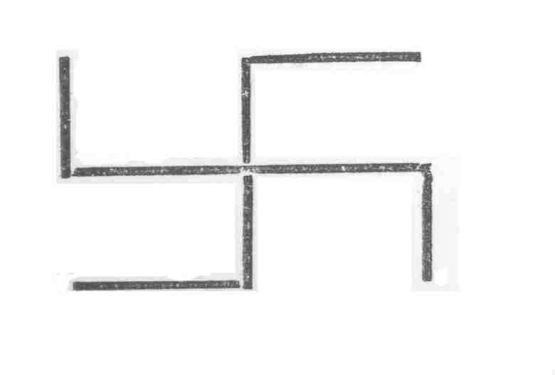 If I said nothing to the inmates of the cottage of all that the trushul or cross trident suggested, still less did I vex their souls with the mystic possible meaning of the antique patteran or sign which I had drawn. For it has, I opine, a deep meaning, which as one who knew Creuzer of old, I have a right to set forth. Briefly, then, and without encumbering my book with masses of authority, let me state that in all early lore, the road is a symbol of life; Christ himself having used it in this sense. Cross roads were peculiarly meaning-full as indicating the meet-of life with life, of good with evil, a faith of which abundant traces are preserved in the fact that until the present generation suicides were buried at them, and magical rites and diabolic incantations are supposed to be most successful when practised in such places. The English path, the Gipsy patteran, the Rommany-Hindu pat, a foot, and the Hindu panth, a road, all meet in the Sanscrit path, which was the original parting of the ways. Now the patteran which I have drawn, like the Koua of the Chinese or the mystical Swastika of the Buddhists, embraces the long line of life, or of the infinite and the short, or broken lines of the finite, and, therefore, as an ancient magical Eastern sign, would be most appropriately inscribed as a sikker-paskero dromescro—or hand post—to show the wandering Rommany how to proceed on their way of life.