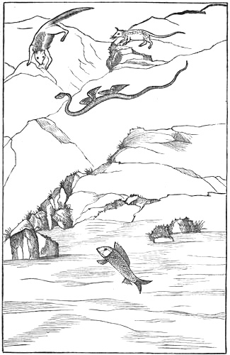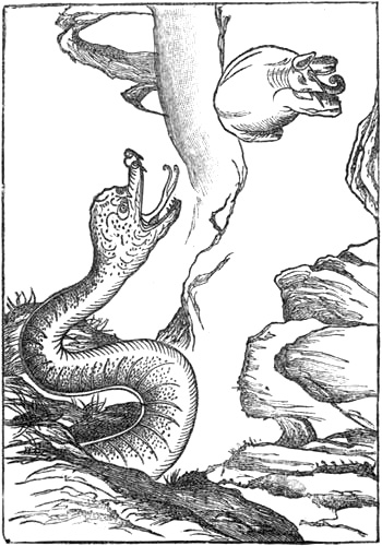 [273] It must be remembered that it is with a blow of its powerful tail that the alligator stuns its prey and knocks it into the water (when any stray animal approaches the bank), and it is with the tail that the dragon, in the fable related by Ælian, chastises, although gently, its mistress, and constricts, according to Pliny, the elephant in its folds.