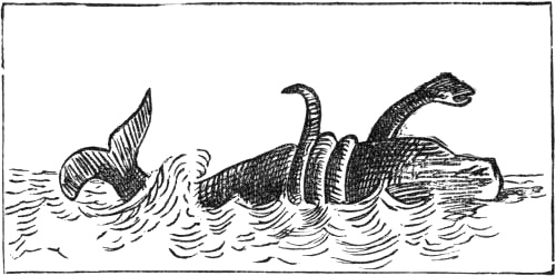 [253] “I fully believe in this great marine monster. I have as much evidence as to its existence as of anything not seen. Some years ago, Captain Austin Cooper and the officers and crew of the Carlisle Castle, on a voyage to Melbourne, saw the ‘varmint.’ A description and sketch of it were published in the Argus. This, when it arrived in London, it being the ‘silly season’ in journalism, was seized and torn to pieces by one of the young lions of the Daily Telegraph, in a leading article, in which much fun was poked at the gallant sailor. ‘I don’t see any more sea-serpents,’ said my Irish friend to me. ‘It is too much to be told that one of Green’s commanders can’t tell the difference between a piece of sea-weed and a live body in the water. If twenty serpents come on the starboard, all hands shall be ordered to look to port. No London penny-a-liner shall say again that Austin Cooper is a liar and a fool.’ After this we softened down over some Coleraine whiskey. Again, some three years ago, the monster was plainly seen off the great reef of New Caledonia by Commandant Villeneuve, and the officers of the French man-of-war, the Seudre. Chassepots were procured to shoot it, but before it came within easy range it disappeared. During my late visit to Fiji, Major James Harding, who was an officer in Cakoban’s army when that chief, ‘by the grace of God’ was king of Fiji, described exactly the same creature as passing within a few yards of his canoe on a clear moonlight night in the Bay of Suva. It swam towards a small island outside the reef, which is known amongst Fijians as the ‘Cave of the Big Snake.’ Major Harding is a cool, brave soldier, who saw much hot work with Cakoban’s men against the hill tribes of Vonua Levu. He was once riddled by bullets, and left for dead. Accustomed for years to travel about the reefs in canoes, every phase of the aspect of the waters was known to him, and he was not likely to be frightened with false fire. The extraordinary thing is, that the English sailor, the French commander, and the Fijian soldier, all gave the same account of this monster. It is something with a head slightly raised out of the water, and with a sort of mane streaming behind it, whilst the back of a long body is seen underneath the water. So, from these instances, in which I know the witnesses, I fully believe in the sea-serpent. What is there very wonderful in it, after all? The whale is the largest living thing. Why shouldn’t the waters produce snakes of gigantic size.” The Vagabond, in Supplement to the Australasian, September 10, 1881.