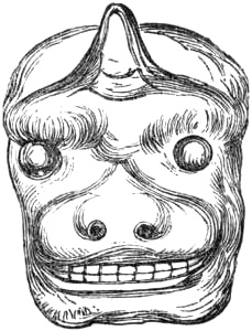 [247] The idea of the eight heads probably originated in China; thus, in the caves in Shantung, near Chi-ning Chou, among carvings of mythological figures and divinities, dating from A.D. 147, we find a tiger’s body with eight heads, all human.