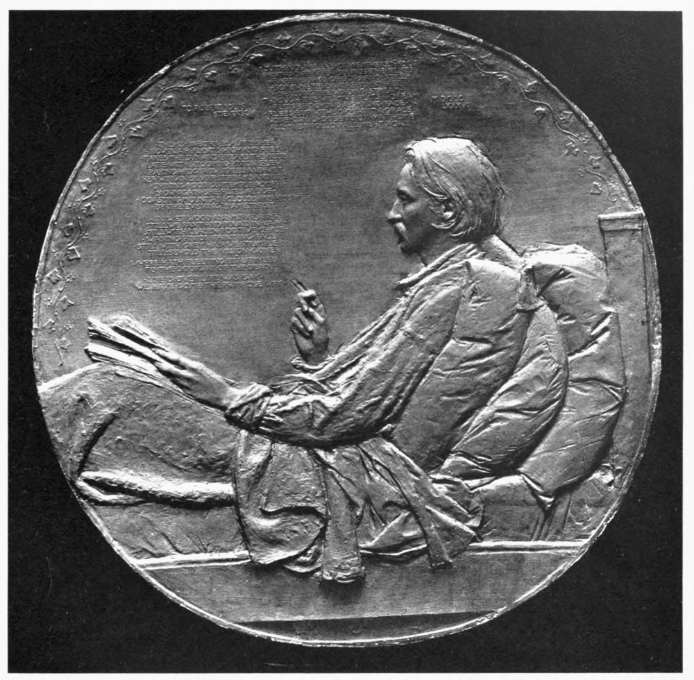 I have chosen these examples to illustrate Saint-Gaudens’s ability to idealise his subject, to reach through the fact to the soul within the fact. But his sensibility to impressions is not only moved by the larger aspects of life; it is also exquisitely sweet and subtle. Study his numerous low-relief portraits—for example, the children of Prescott Hall Butler, those of Jacob H. Schiff, and the single portraits of Miss Violet Sargent and of Robert Louis Stevenson. In all these and in many others his sensibility is exhibited, not only in the sympathetic comprehension of character, but also in the extraordinary finesse of the execution.