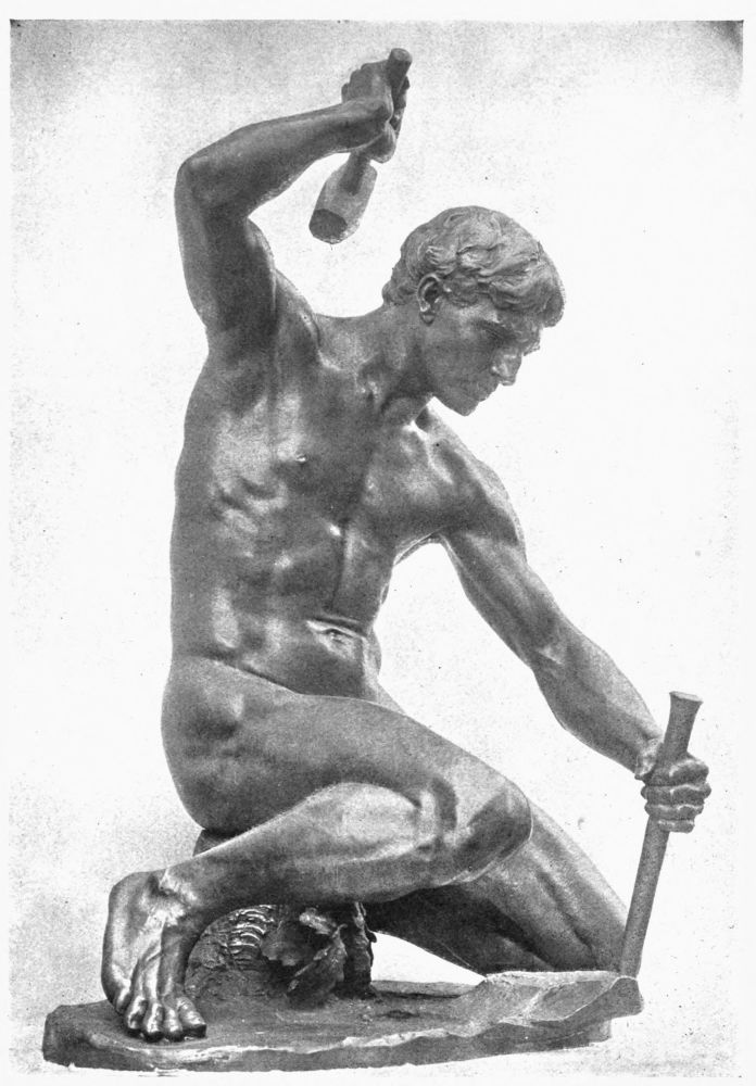 With only a few exceptions all our sculptors of the present generation have acquired their training, either wholly or in part, in Paris; that is to say, in the best school in the world. For France, ever since the Middle Ages, has never been without a succession of great sculptors. When the Gothic spirit had spent itself, that of the late Italian Renaissance was imported; and the art, continually adjusting itself to the changing conditions of national life, has been held in uninterrupted honour to the present time. It is in this branch of the fine arts that the French genius has found its most individual expression. Corresponding with the maintenance of fine traditions is the excellence of the system of teaching. The Institute and the École des Beaux Arts perpetuate a standard, characterised by technical perfection and elegance of style, while the tendency to academic narrowness is offset by the influence of independent sculptors; for there is not a thought-wave in modern art that does not emanate from or finally reach Paris. It is the world’s clearing-house of artistic currency.