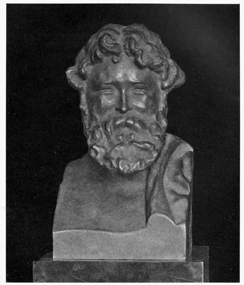 If one could really know the boy’s emotions, what a revelation it would be! To most of us, if we can recall our youth, the impressions that counted most came gradually, finding us often unprepared for them, and through circumstances or our own levity of soul unable to receive due profit at the time. But to the young Barnard, with a seriousness beyond his years, peering into the mystery of life, feeling after expression in form, the revelation of Michelangelo’s genius must have been like sudden light to a blind man, who, hitherto, had had but vague imaginings of light and form. There, in the quiet afternoons, until daylight faded into twilight, alone with these sublime beings, the boy would sit and sit. Tired on one occasion, he sat himself in the lap of the “Moses”—for he was small and boyish-looking despite his seventeen years—and resting his curly head against the statue’s beard fell fast asleep, his young, eager spirit, wrapped around and absorbed by the influence of the mighty dead. Do you not perceive in this little story another proof{27} of the boy’s physical joy in form, so that after drawing from it sustenance to his spirit he nestled into contact with the feel of it, as a baby, surfeited with nourishment, lies close to the mother’s breast?