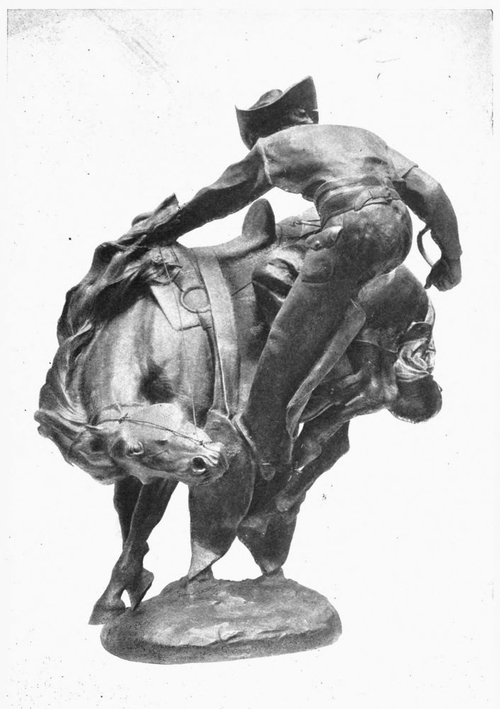 In a brief summary of this sculptor’s art the thing to be noted is that it is distinguished as much by breadth of conception as by expression of character, and always with an instinctive regard for the simplest form of plastic interpretation. It is this which separates him from the hypersensitive tendencies of the old world and proves him to be a prophet of the new. His vision is less penetrating than embracing; his{36} methods more constructive than analytical; his emotions ample, sane. His genius indeed has not grown with the sinuous convolutions of a sapling that enforces its existence in a thicket, but like one that stands alone in virgin soil with spaciousness around it.{37}