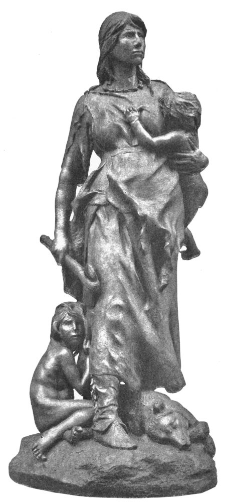 Such happiness may fairly be enjoyed by Ward. His share in establishing the National Sculpture Society, of which he has been president since its foundation, would alone entitle him to the{41} permanent consideration of his colleagues, while to the sum total of American sculpture he has made some very notable contributions. That his work includes examples which fall short in artistic conception and in technical skill, is undeniable. They are the result partly of the circumstances of his development and partly of his own determined, straightforward character; a combination of meager artistic experiences at the start and of a predisposition to the objective point of view.
