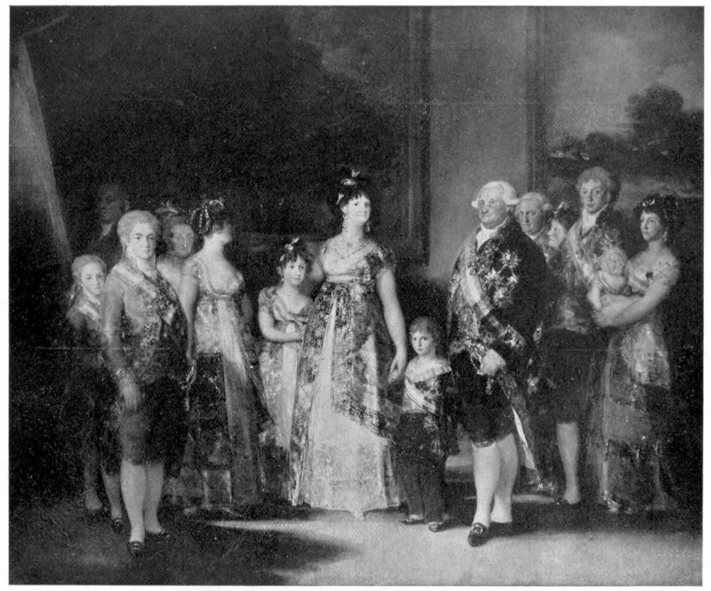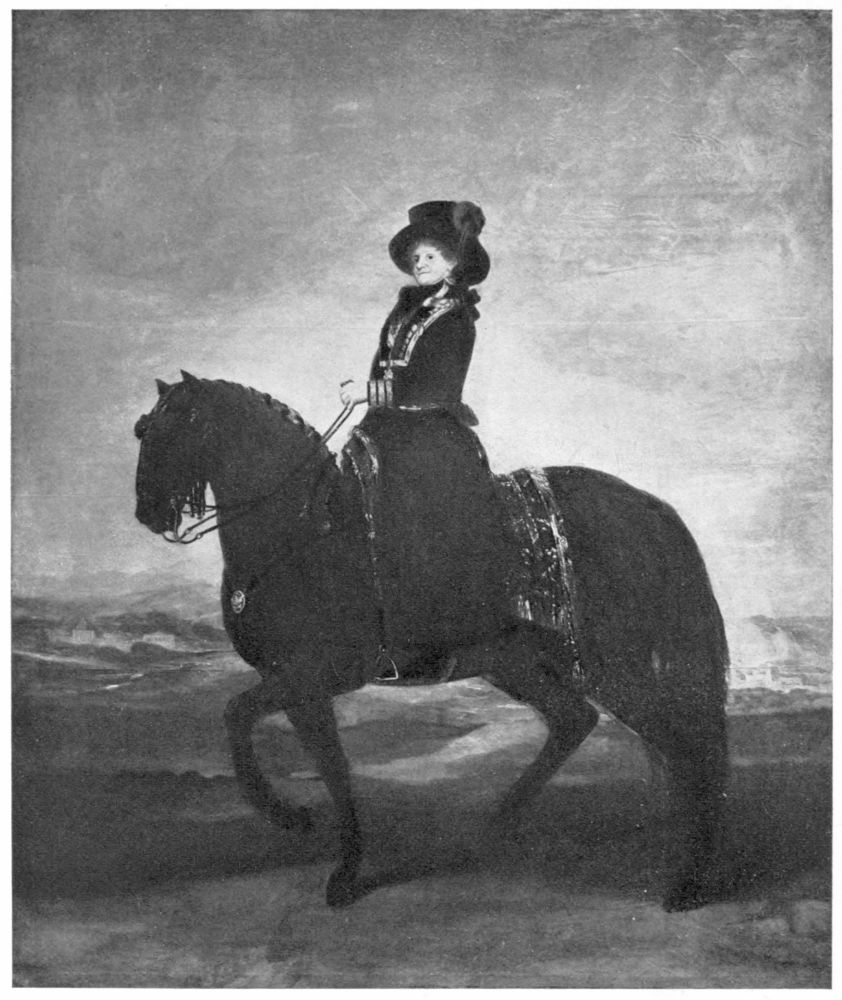 Charles IV was an amiable imbecile and his Queen, Maria Luisa, the shameless subject of notorious scandal. One of her favorites, Manuel Godoy, advanced from the rank and file of a regiment of the Guards to the title of Duke of Alcudia, was entrusted with the duties of prime minister. After embroiling the country in successive wars with France and England, he finally attached himself to the cause of Napoleon and favored the latter’s design to place his brother Joseph on the Spanish throne. The French entered Spain in 1808 and compelled Charles to abdicate. But in the same year the Spaniards rose against the invaders, and the English came to their assistance. Then followed the Peninsular War, during which Wellington gradually expelled the French troops, but not until they had pillaged the cathedrals and churches and carried off a large number of the finest works of art. For Marshal Soult, with the predatory instincts of an unscrupulous dealer, sent his emissaries ahead of the army. Armed with the “Dictionary of Painters and Paintings” by Cean Bermudez, they identified and attached the most famous canvases, which the Marshal compelled their owners to part with at his own terms. On the conclusion of the war many of these were returned to Spain{24} under the terms of the treaty of peace, but a number of masterpieces had already passed through Soult’s rapacious hands into the public and private galleries of Europe.