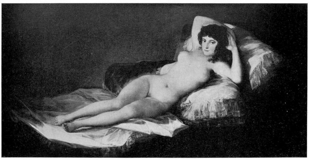 He had been brought up by Louis XIV to be undesirous and incapable of taking part in political affairs. While the country continued to be involved in disastrous foreign wars this roi fainéant amused himself with building a summer palace and laying out gardens, both in the French style. He also imported the French portrait-painter, Van Loo. It must be added, however, that the stock of Spanish painters had been exhausted. Native art, indeed, for the time, was all but dead. It so remained through the thirteen years’ reign of his son, Ferdinand VI, though he tried to galvanize it into official life by inaugurating the Academy of San Fernando. This king was succeeded by his brother Charles III, who had already distinguished himself by his wise rule of the Kingdom of the Two Sicilies. His portrait by Goya, in the costume of a sportsman, shows him to be a man of awkward build and of homely, though kind and shrewd, face. He proved himself a generous patron of second-rate{23} artists, inviting the German painter, Raphael Mengs and the Venetian, Tiepolo, to his Court; built the present gallery of the Prado and issued an order forbidding the exportation of paintings by the great masters of Spain. He appears to have had some inkling of the genius of Goya, who, however, did not come into prominence until the succession of Charles IV.