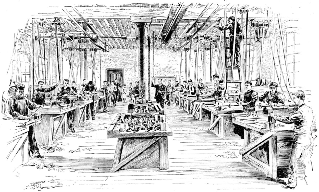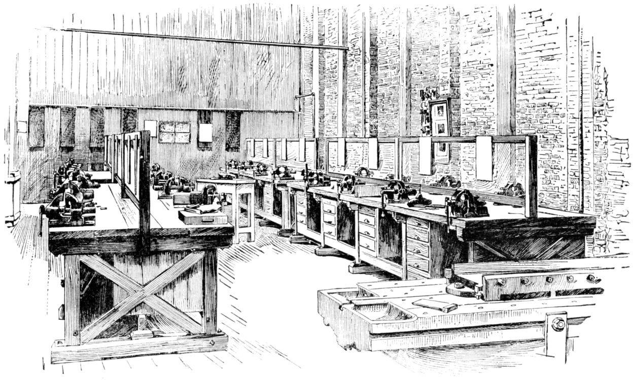 The Foundery and Smithy are Ancient, the Machine-tool Shop is Modern. — The Giant, Steam, reduced to Servitude. — The Iron Lines of Progress. — They converge in the Shop; its triumphs from the Watchspring to the Locomotive. — The Applications of Iron in Art is the Subject of Subjects. — The Story of Invention is the History of Civilization. — The Machine-maker and the Tool-maker are the best Friends of Man. — Watt’s Great Conception waited for Automatic Tools; their Accuracy. — The Hand-made and the Machine-made Watch. — The Elgin (Illinois) Watch Factory. — The Interdependence of the Arts. — The making of a Suit of Clothes. — The Anteroom of the Machine-tool Laboratory. — Chipping and Filing. — The File-cutter. — The Poverty of Words as compared with Things. — The Graduating Project. — The Vision of the Instructor.78