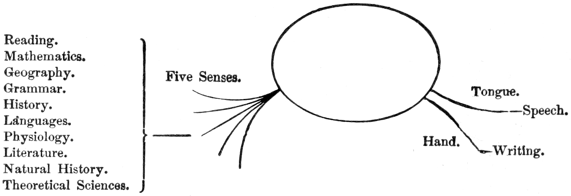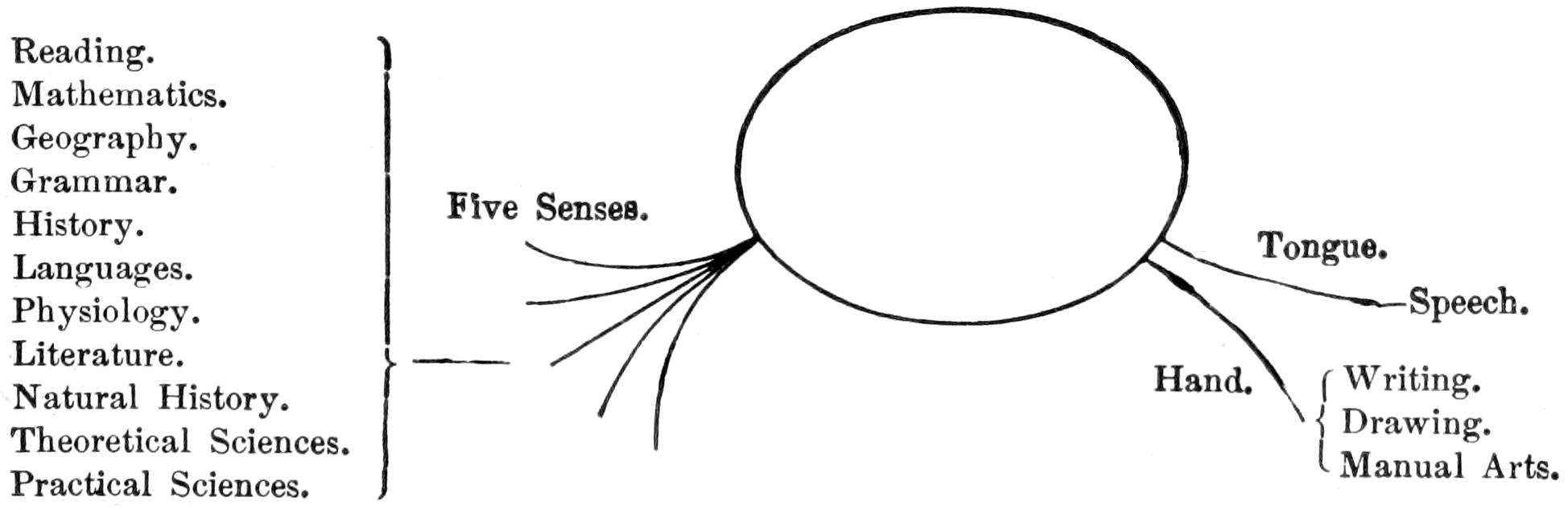 The Mind and the Hand are Allies; the Mind speculates, the Hand tests its Speculations in Things. — The Hand explodes the Errors of the Mind — it searches after Truth and finds it in Things. — Mental Errors are subtile; they elude us, but the False in Things stands self-exposed. — The Hand is the Mind’s Moral Rudder. — The Organ of Touch the most Wonderful of the Senses; all the Others are Passive; it alone is Active. — Sir Charles Bell’s Discovery of a “Muscular Sense.” — Dr. Henry Maudsley on the Muscular Sense. — The Hand influences the Brain. — Connected Thought impossible without Language, and Language dependent upon Objects; and all Artificial Objects are the Work of the Hand. — Progress is therefore the Imprint of the Hand upon Matter in Art. — The Hand is nearer the Brain than are the Eye and the Ear. — The Marvellous Works of the Hand.144