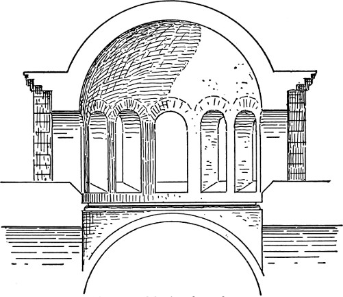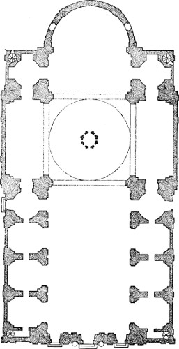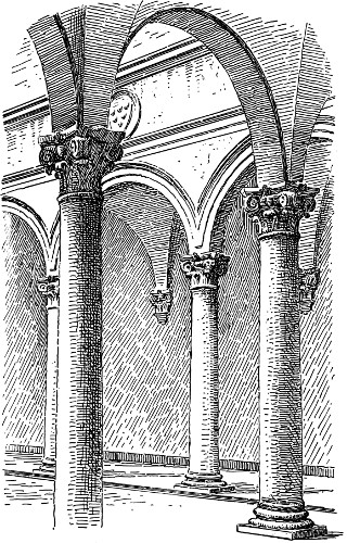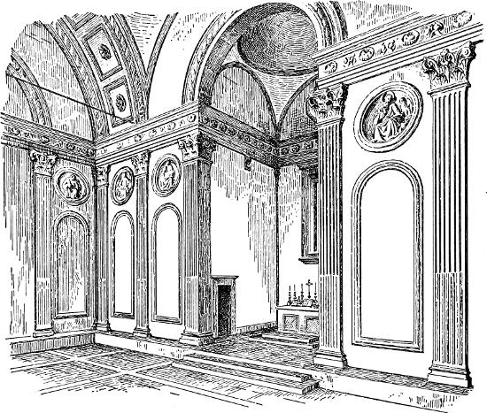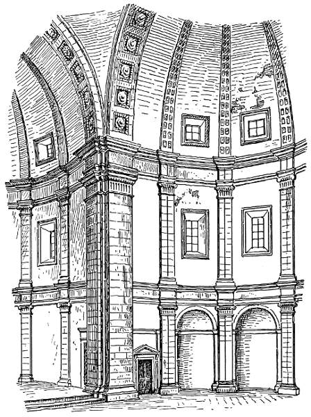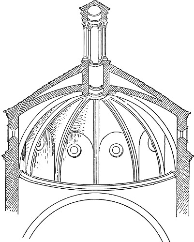 [105] Salient ribs of stucco are carried up in the angles of the dome of the sacristy as they are in the vaulting of the apses of Todi.