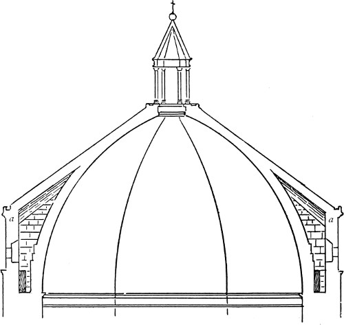 | Exhibits a wide departure from older dome constructions—Sources of the architect’s inspiration—General character of earlier domes—Remarkable construction of the dome of the Florentine Baptistery—It probably supplied the chief inspiration to both Arnolfo and Brunelleschi—Brunelleschi’s departures from the Baptistery scheme—His structural system and his own account of it—No Gothic character possible in a dome—The dome of Florence a daring innovation—Its general dimensions—Brunelleschi’s great ability as a constructor—His achievement of the work without the usual centring—Consideration of the dome as a work of art—The inherent weakness of its form—This not appreciated by the early Italian writers—Precautions taken for its stability—Signs of disintegration—Uncertainty as to its duration—Opinions of the early Italian writers as to its security—Structural integrity essential to good architecture—No classic character in Brunelleschi’s dome—Inferior character of the classic details of the lantern | 10 |