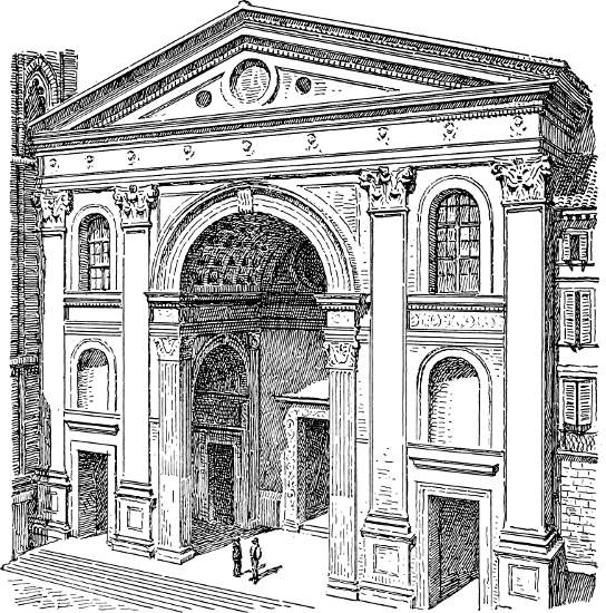 | The Pazzi chapel—Gothic character of its central vault—Architectural treatment of the interior—Impropriety of a classic order in such a building—Awkward result of an entablature passing through an arch impost—Incongruities of design and construction in the portico—Use of stucco—Sources from which the façade may have been derived—Other church architecture by Brunelleschi—San Lorenzo and Santo Spirito—Use of the entablature block in these churches—Survival of mediæval features and adjustments—Church architecture of Leon Batista Alberti—The façade of Santa Maria Novella—The façade of San Francesco of Rimini—The church of Sant’ Andrea of Mantua—Return to Roman models in the structural forms of this building—Sant’ Andrea foreshadows St. Peter’s at Rome—Its west front an adaptation of the Roman triumphal arch scheme—Such fronts peculiar to Alberti—The designers of the Renaissance worked unconsciously on a foundation of mediæval ideas | 26 |