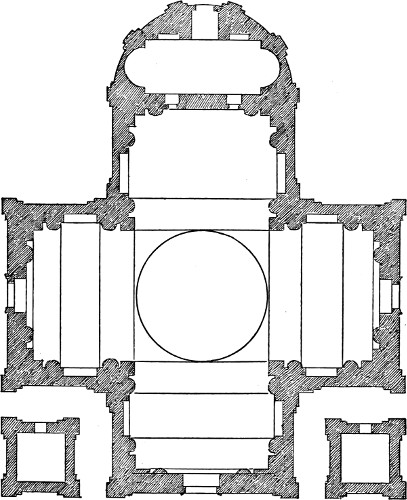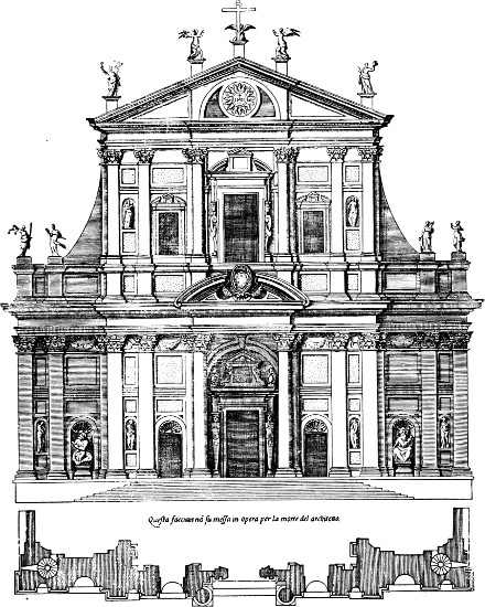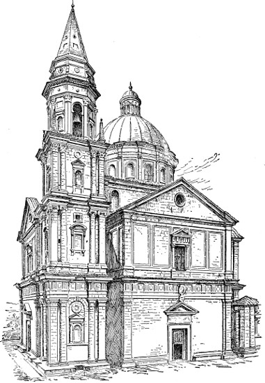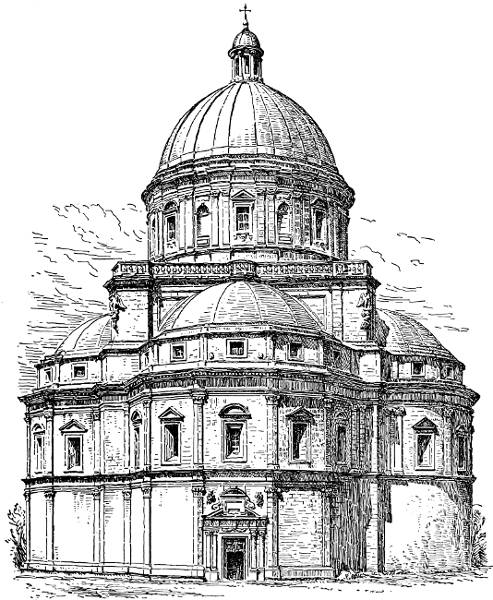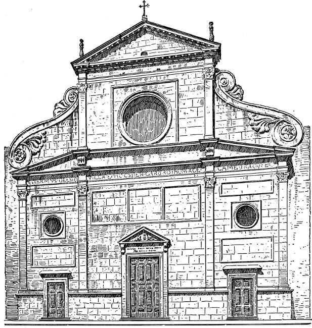 | Other parts of the church of St. Peter—Beauty of its plan—This plan could not be carried out with a good result in classic Roman details—Awkward makeshifts to which Michael Angelo was led—The colossal order of the interior—The magnitude of the structural parts of the church unavoidable—The real character of the building contradicted by the external order—Makeshifts which this order necessitated—The real character of St. Peter’s has been rarely analyzed—Its grandeur due to its magnitude and to what it derives from the design of Bramante—Its incongruity and extravagance—Use of stucco in the ornamentation of the interior—Extravagant laudation of the building by the earlier Italian writers—Antonio San Gallo’s project for St. Peter’s—Earlier examples of Roman Renaissance church architecture—Sant’ Agostino a mediæval building with Renaissance details—Its façade—Santa Maria della Consolazione at Todi—Its attribution to Bramante—Irrational treatment of its interior—Merit of the exterior in its larger features—San Biagio at Montepulciano—The order of the interior—The Renaissance use of a pilaster coupled with a column on the corner of a building—Roman treatment of the corner—Instance of the use of a corner pilaster described by Serlio—The exterior of San Biagio—Its campanile and lantern—The evolution of this form of tower—System of Santissima Annunziatta at Arezzo—Vignola, and Milizia’s remarks on him—His book of architecture—His advocacy of ancient Roman art and his disregard in practice of its principles—His design for Sant’ Andrea di Ponte Molle—Its derivation from the Pantheon—Vignola’s design for the church of Santa Maria degli Angeli at Assisi—His design for the Gesù at Rome—Aberrations of design in this work—The façade by Della Porta—Palladio, and his great influence on modern art—His book of architecture—His design for the church of San Giorgio Maggiore at Venice—The Redentore and San Francesco della Vigna | 66 |