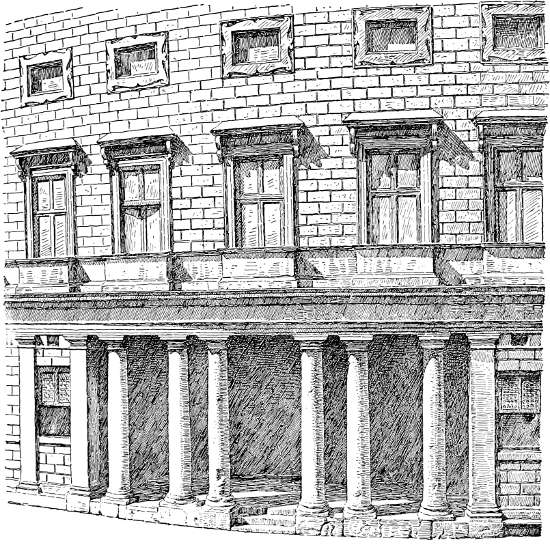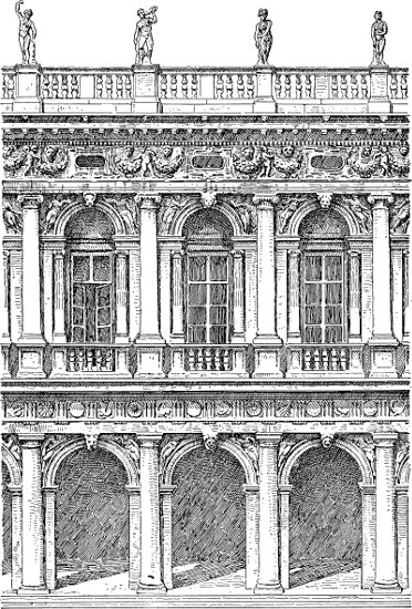 | The Cancellaria—Its attribution to Bramante—Exhibits features in further conformity with the Roman antique—Its pilasters in pairs—Its projecting [xii]bays—Its portals—Arcades of its court—The Palazzo Massimi—The functional order of its portico—Treatment of the upper façade—The Palazzo Farnese—Application of orders and pediments to the windows—The broken entablatures of these windows—An ancient example of similar treatment—Orders of the court—Awkward result in the angles—Rhythmical scheme of the cloister of Santa Maria della Pace—Lack of reason for this scheme—The architect Sansovino—His design for the Library of St. Mark at Venice—Treatment of the angles of the Doric order—Free-standing column in the order of the upper story—Sansovino’s design for the Loggetta of the Campanile—His design for the Palazzo Cornaro—Sanmichele—His design for the Porta del Palio at Verona—His design for the Palazzo Canossa—The Palazzo Pompei alla Vittoria—The Palazzo Bevilacqua—Its singular aberrations of design—Vignola’s design for the Palazzo Caprarola—Influence of its circular court on De l’Orme and Inigo Jones—The civic and domestic architecture of Palladio—The Portico of Vicenza—Its derivation from the town hall of Padua and from the Library of St. Mark—Syrian instance of the free-standing column in connection with the arch—Palladio’s own estimate of the merits of this design—Use of poor materials by Palladio—His versatility in meaningless composition—His palace fronts—Palladio a grammatical formalist—The art of Scamozzi—His use of an entablature broken by an arch | 112 |