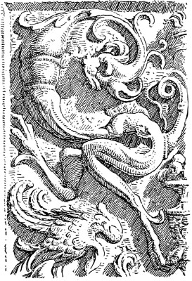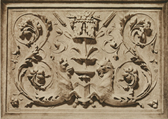 [112] Vitruvius, bk. 7, chap. 5, refers with disapproval to the tasteless and meaningless monstrosities embodied in the ornamental art of his time, and the remains of Roman reliefs offer many examples of such design.