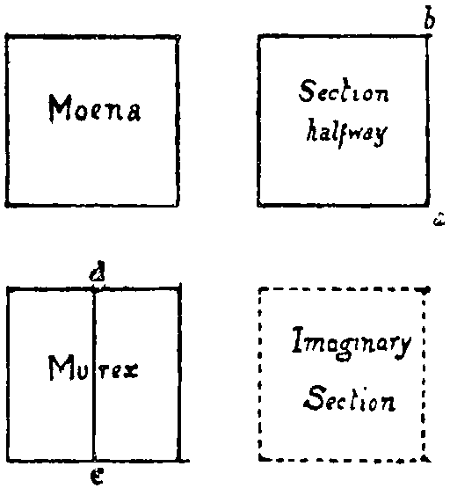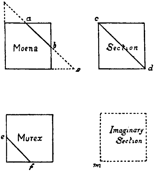 It is clear that there are four orders of sections of every four-dimensional figure; namely, those beginning with a solid, those beginning with a plane, those beginning with a line, and those beginning with a point. There should be little difficulty in finding them, if the sections of a cube with a tetra-hedron, or an octa-hedron enclosed in it, are carefully examined.