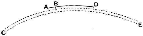 Suppose a thread to be passed through a thin sheet of wax placed horizontally. It can be passed through in two 19 ways. Either it can be pulled through, or it can be held at both ends, and moved downwards as a whole. Suppose a thread to be grasped at both ends, and the hands to be moved downwards perpendicularly to the sheet of wax. If the thread happens to be perpendicular to the sheet it simply passes through it, but if the thread be held, stretched slantingwise to the sheet, and the hands are moved perpendicularly downwards, the thread will, if it be strong enough, make a slit in the sheet.