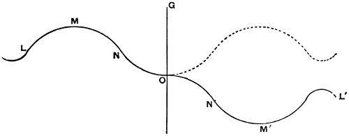 According to the first condition, or that of permanence, no one of these spots must suddenly cease to exist. That is, the thread which by sharing in the general motion of the system gives rise to the moving point, must not break off before the rest of them. If all the lines suddenly ended this would correspond to a ceasing of matter.