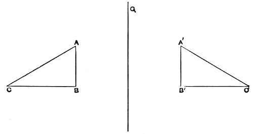 And we could go on for ever building more and more complicated shapes and telling him to do the same, and no hitch or difficulty would come. But at the end all his shapes might be ours just reversed, as if seen in a mirror.
