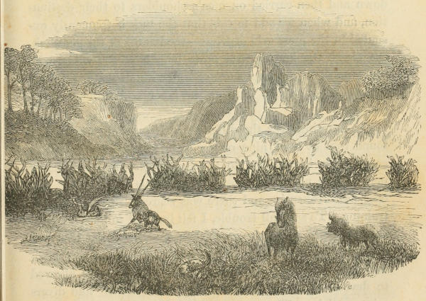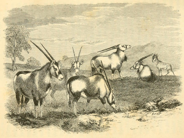 | The Oryx; more than one Species.—Where found.—Probably known in Europe previous to the discovery of the Passage round the Cape of Good Hope.—Description of the Oryx.—Gregarious.—Speed.—Food.—Water not necessary to its existence.—Will face the Lion.—Formidable Horns.—Their Use.—Flesh.—The Chase of this Animal | 272 |