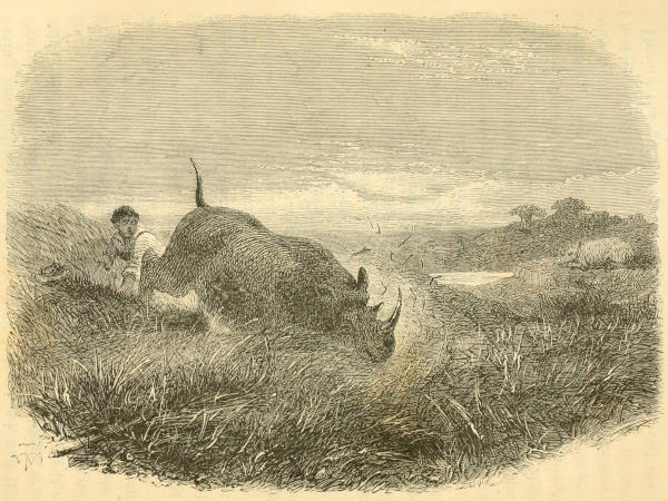 | Ghanzé.—Spotted Hyæna.—The Rhinoceros.—Where found.—Several Species.—Description of Rhinoceros.—Size.—Appearance.—Age.—Strength.—Speed.—Food.—Water.—The Young.—Affection.—Senses.—Disposition.—Gregarious.—Indolence.—Domestication.—Flesh.—Horns.—The Chase.—Mr. Oswell’s Adventures with Rhinoceroses.—A Crotchet.—Where to aim at the Rhinoceros.—Does not bleed externally when wounded.—Great numbers slain annually | 368 |